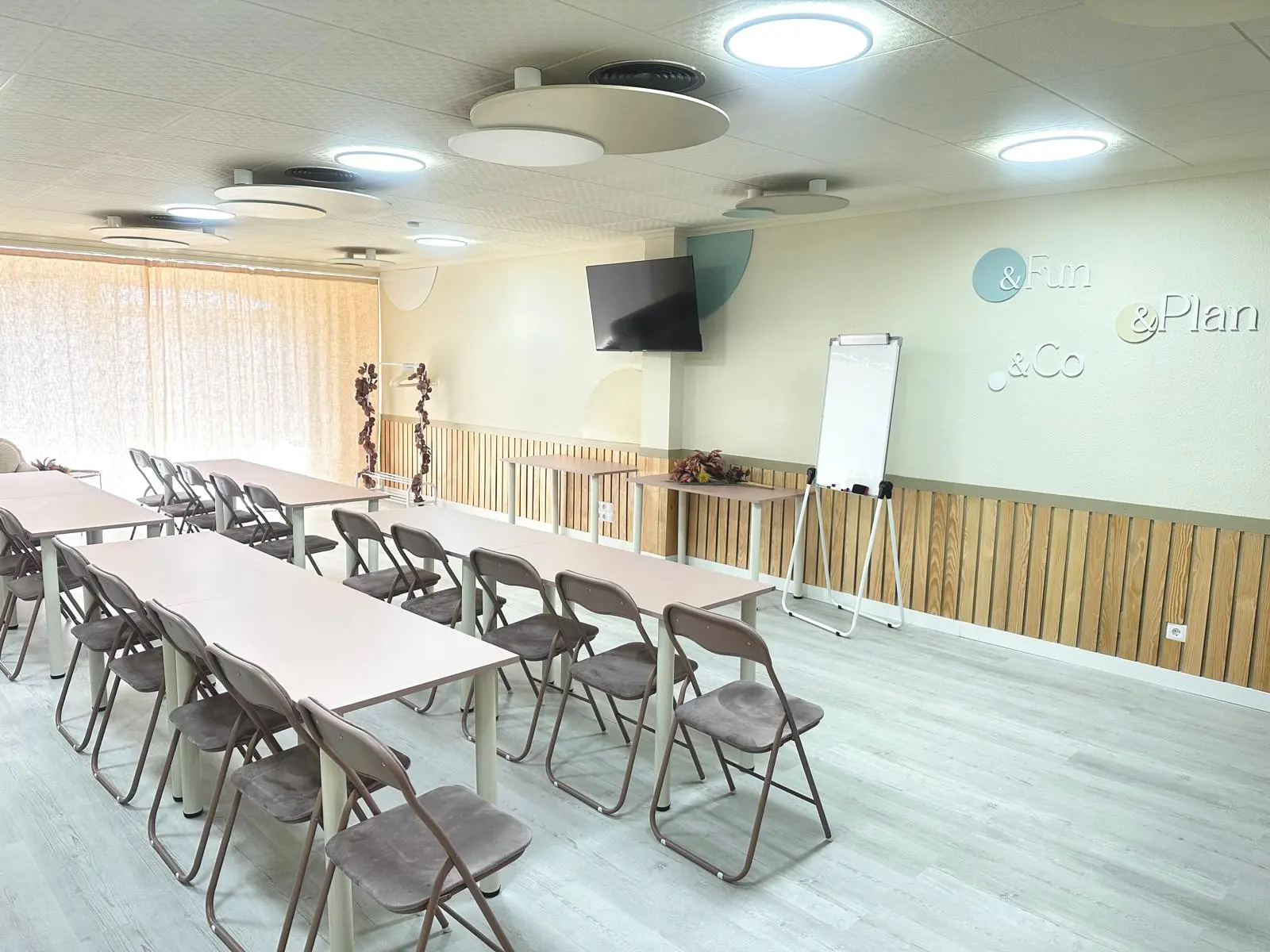 Ideal para formaciones, reuniones de trabajo, sesiones de networking o actividades creativas. Con Smart TV, Wi-Fi por QR, proyector, Flipchart y climatización. Todo lo que necesitas para centrarte en lo importante.